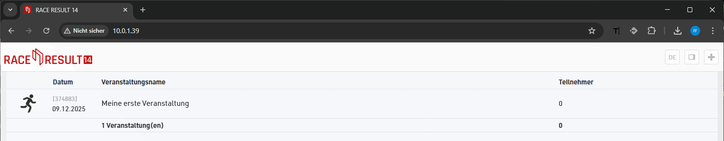 Um von anderen Computern im lokalen Netzwerk auf die Veranstaltung zuzugreifen, geben Sie lediglich die IP-Adresse (die auf der linken Seite im RACE RESULT Webserver angezeigt wird) in Ihren Browser ein: