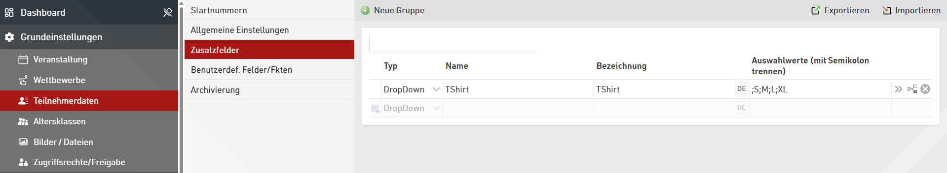 Individualisieren Sie Ihre Veranstaltungsdatei, indem Sie Zusatzfelder für benötigte Daten, bspw. T-Shirt-Größen, Notfallkontaktdaten o.ä., erstellen.