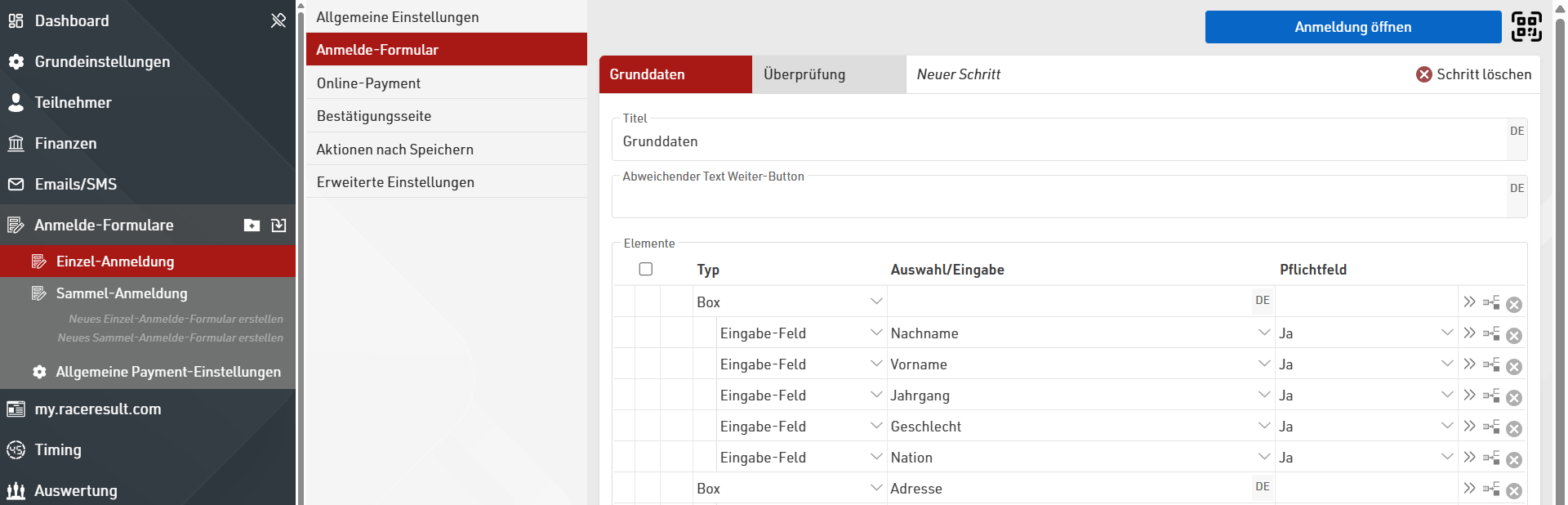 Aufgrund der Komplexität der Anmelde-Formulare lesen Sie für weitere Details den Hauptartikel zu [[|32814|Anmelde-Formularen]].