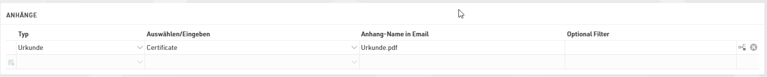 Werden Anhänge mitgeschickt, ist es wichtig, dass die Dateiendung in der Bezeichnung hinzugefügt wird. Über den Optionalen Filter kann bspw. eingestellt werden, dass in einer Sammel-Email nach einer Gruppenanmeldung nur der erste Anmelder über den Filter [SammelAnmPos]=1 den Anhang erhält.