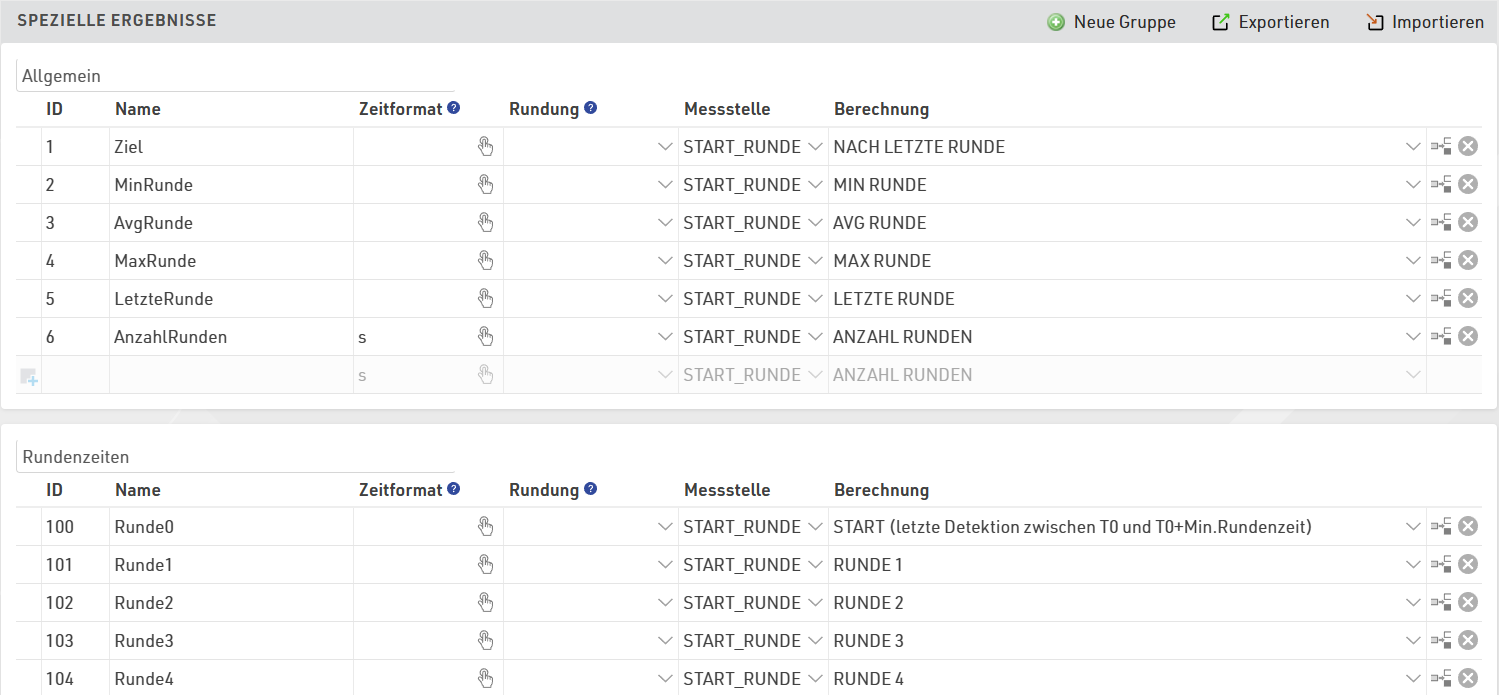 Spezielle Ergebnisse - Ergebnisse sind Felder mit einer Zeit, die entweder von Rohdaten gezogen/berechnet werden kann, oder aus allen möglichen anderen Daten. Spezielle Ergebnisse können bspw. bei Rundenrennen über eine bestimmte Zeit notwendig sein oder für die Berechnung von Punkten in Serienwertungen.