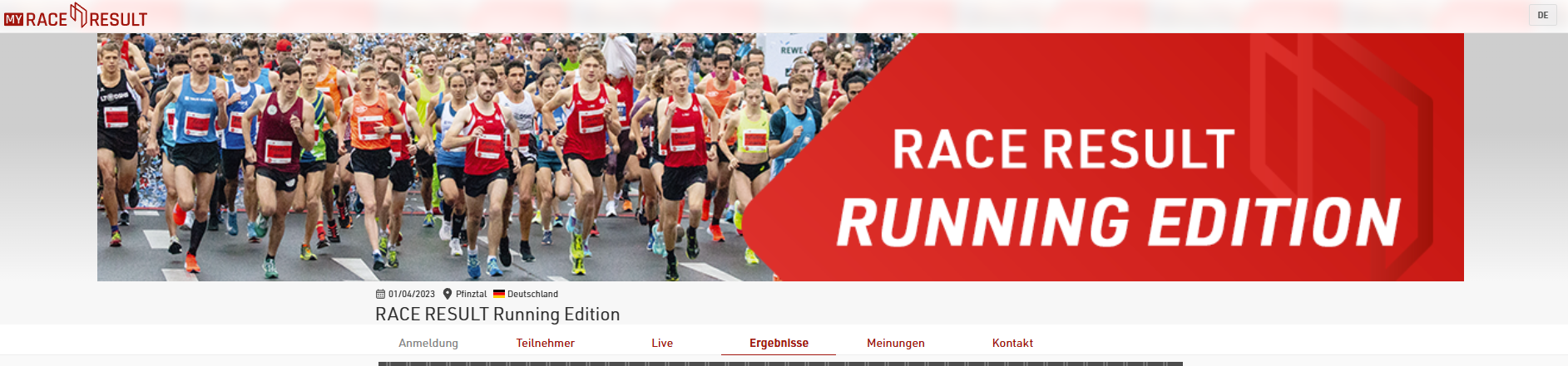 Die Unterseiten Teilnehmer, Live & Ergebnisse ermöglichen Ihnen die Veröffentlichung verschiedener Listen auf my.raceresult.com. Jede Seite hat einen vorgesehen Nutzen, um die Navigation für den Teilnehmer so einfach wie möglich zu halten.