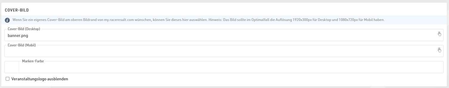 Wenn Sie ein Veranstaltungslogo hochgeladen haben, wird dieses ebenfalls auf my.raceresult.com angezeigt. Da dieses das Cover-Bild überlappt, können Sie es optional ausblenden.