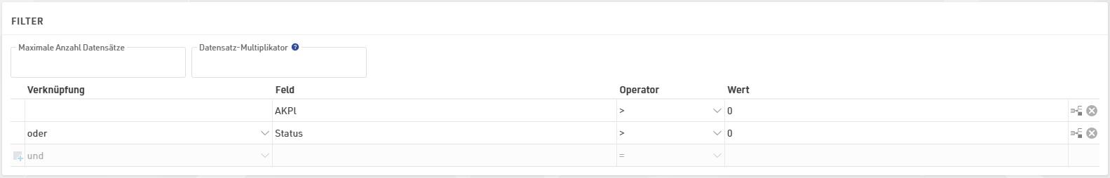 Anstatt einen Filter zu setzen, können Sie die Anzahl Datensätze über die Maximale Anzahl Datensätze limitieren.