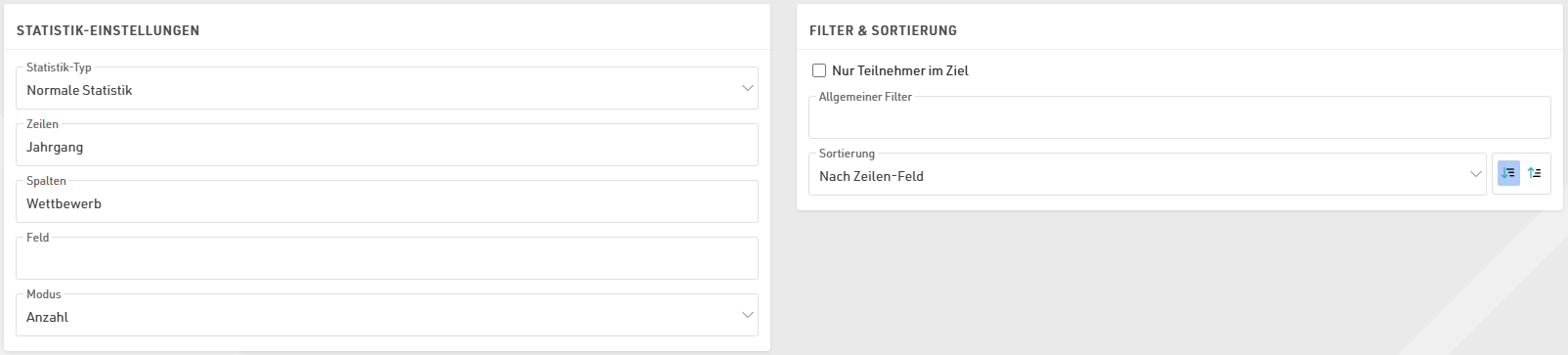 Sie können ganz einfach eine neue Statistik ersellen. Die wichtigsten Einstellungen sind Zeilen, Spalten, Feld und Modus.