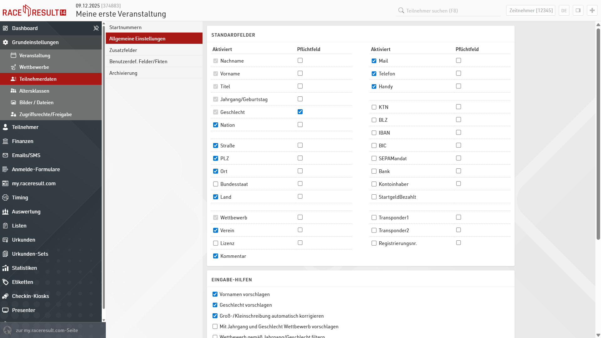 - Alter am Veranstaltungstag - Alter des Teilnehmers am Veranstaltungstag gemäß Grundeinstellungen