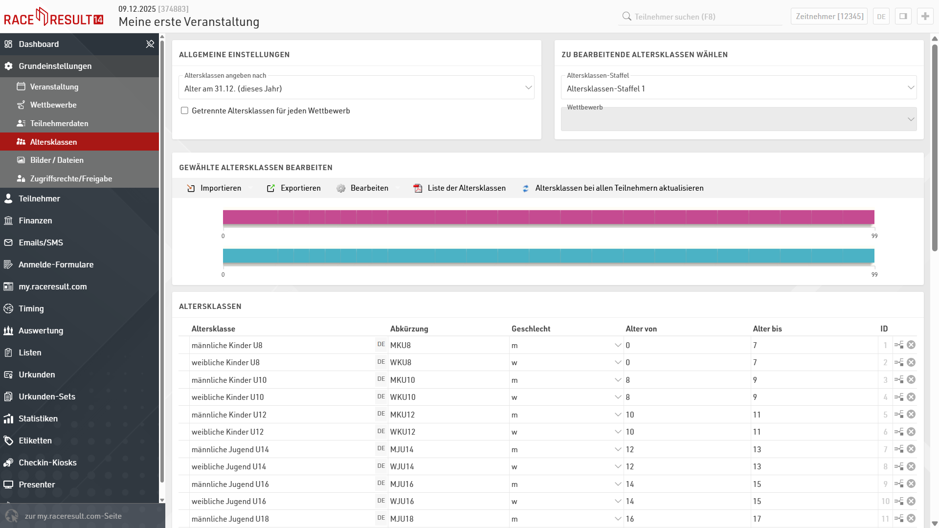 In den Einstellungen unter Altersklassen können Sie die Altersklassen definieren.