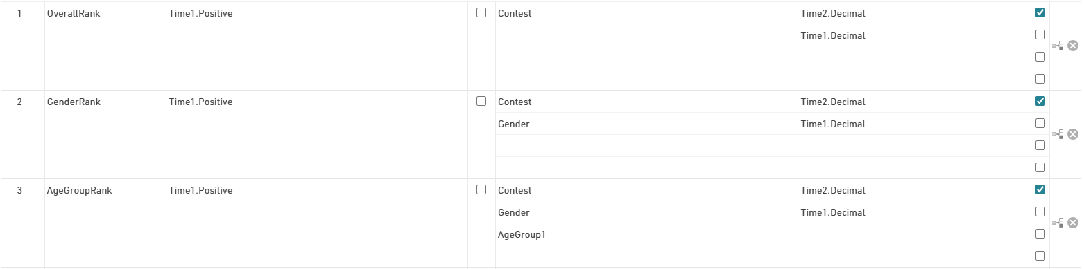 We also need to Rank all participants according to this Finish time of day, this is done with a specific rank which has no grouping and sorts according to our result or split.