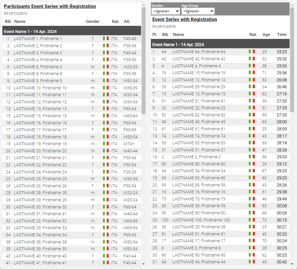 These labels can then be shown on the LIVE list, so spectators can follow which part of the race each participant is currently in.