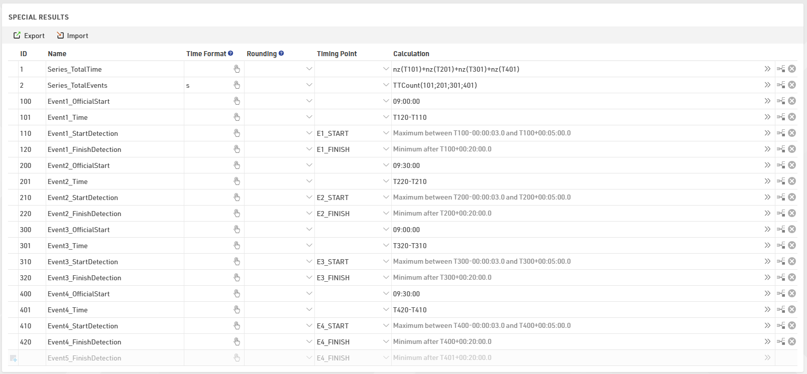 Finally, a FinishTime special result is created to calculate the net time by subtracting the StartTime from the FinishDetection time.