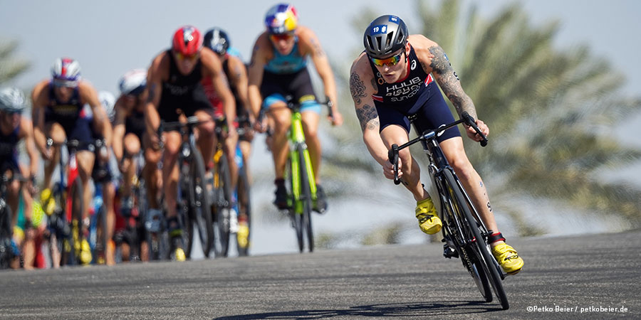 对于铁人三项,参与者使用尼龙搭扣带将有源芯片佩戴在脚踝上。