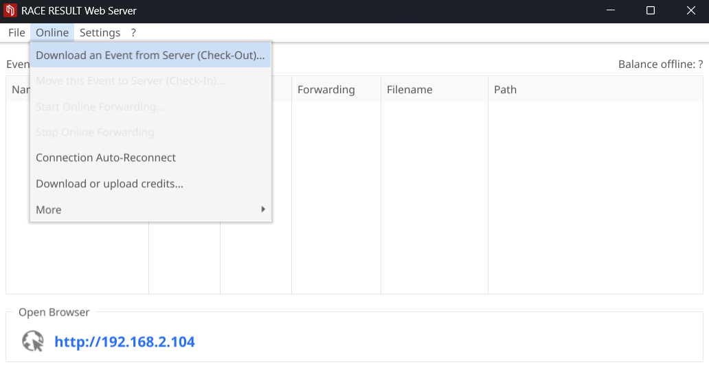 The web server is used to open your Event Files on the local RACE RESULT server, you can create new files if you plan to work entirely offline through File-New Event