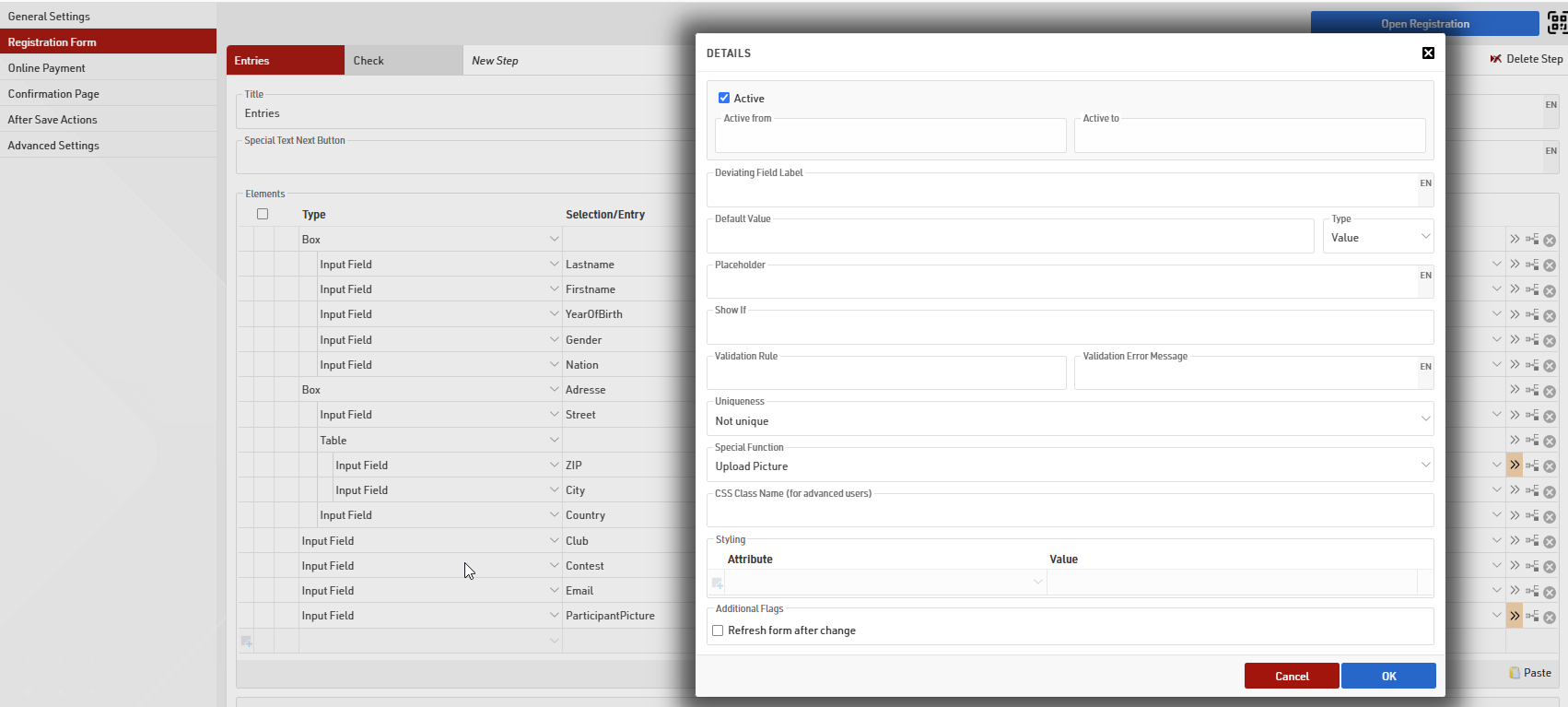 All newly created events will benefit from the advantages of the new registration process. You can find the new tool in RACE RESULT 12 under Main Window → Event → Registration Forms. Both individual and group registration templates have already been set up.