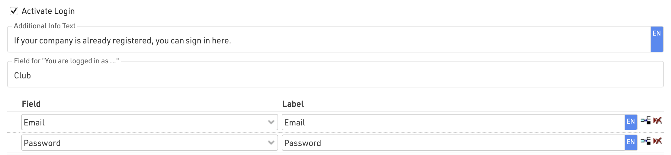 Login can be used to allow users to login to access specific registration forms or self service forms: this is commonly used for Company-Races where only one member of a team is in charge of the registration of all members of a team.