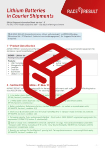 This document helps customers shipping RACE RESULT devices provide all necessary information to couriers, to ensure a compliant handling of shipments containing lithium batteries.