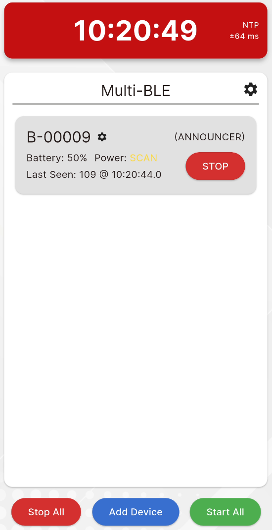 Multi-BLE mode allows the connection of multiple BLE Readers simultaneously, primarily for where the exact times are not important such as kiosks or as triggers for presenter displays.