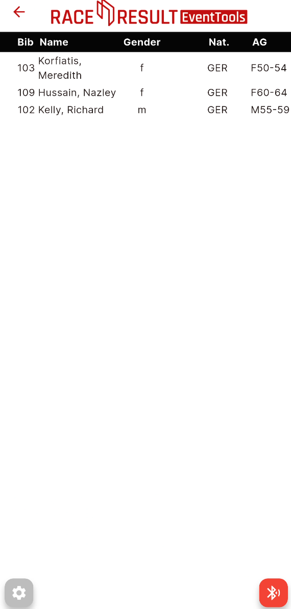 The RACE RESULT BLE Reader connects via Bluetooth-Low-Energy directly through the RACE RESULT EventTools app.