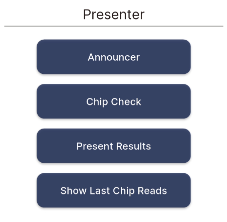 EventTools can be used to open presenter displays from your Event File. This may be useful for event announcers or for creating results displays.