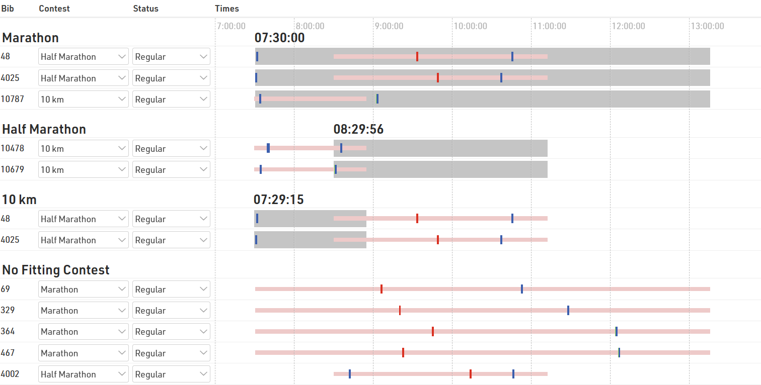 - The red bar, on the contrary, shows the time span of the contest the participant is actually registered for.