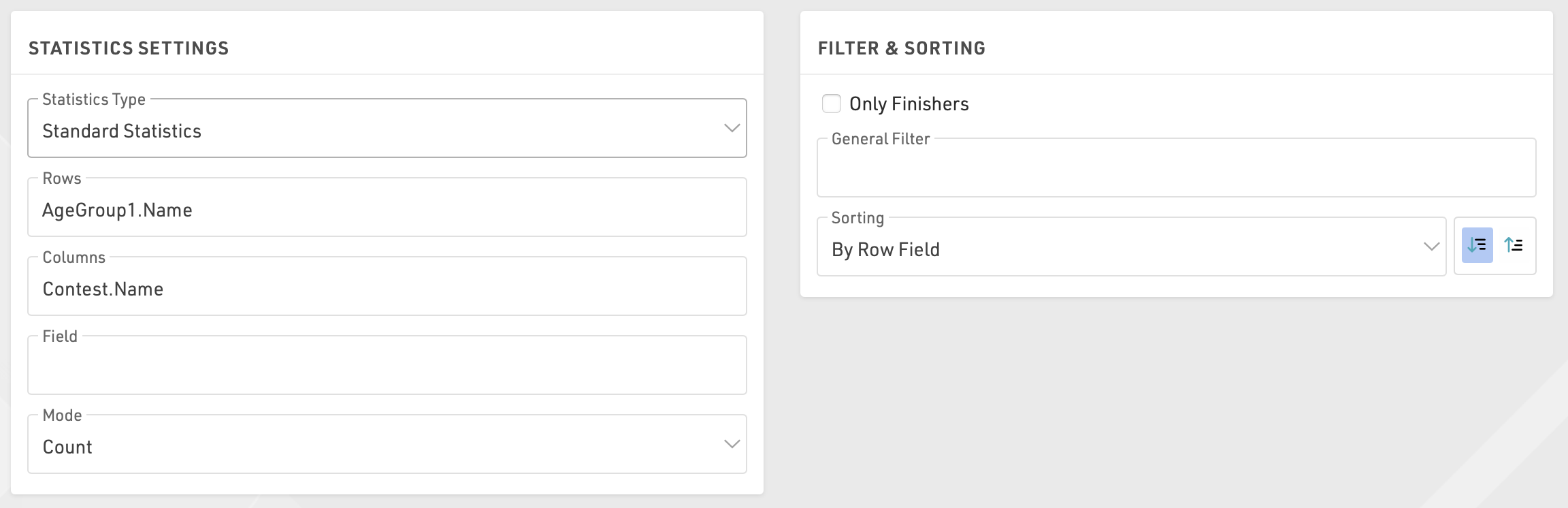 If you want to restrict the participants considered for the statistics, enable Only Finishers or enter a General Filter.