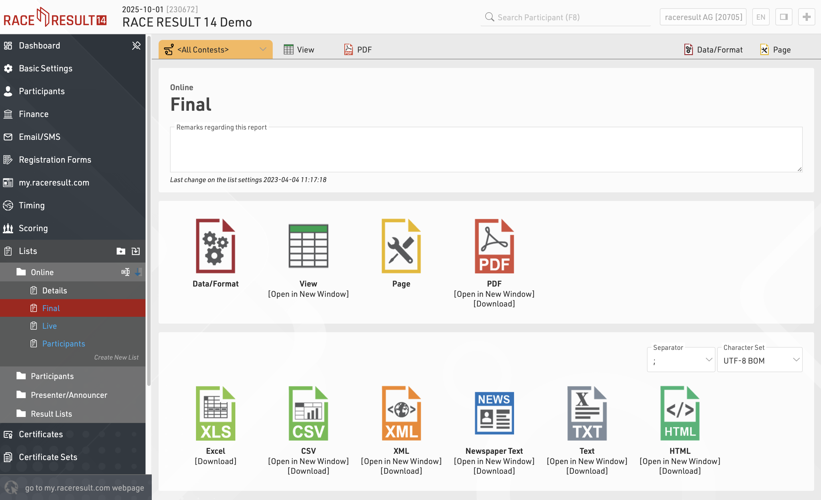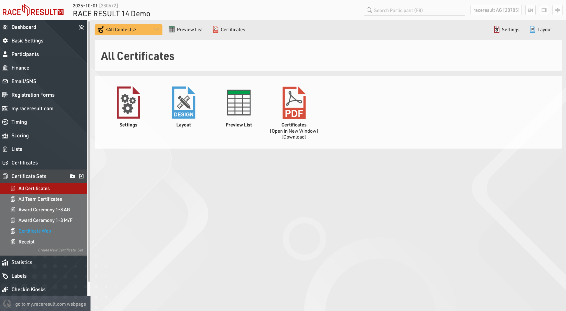 - RACE RESULT 14 Browser: the browser-based user interface of the software.