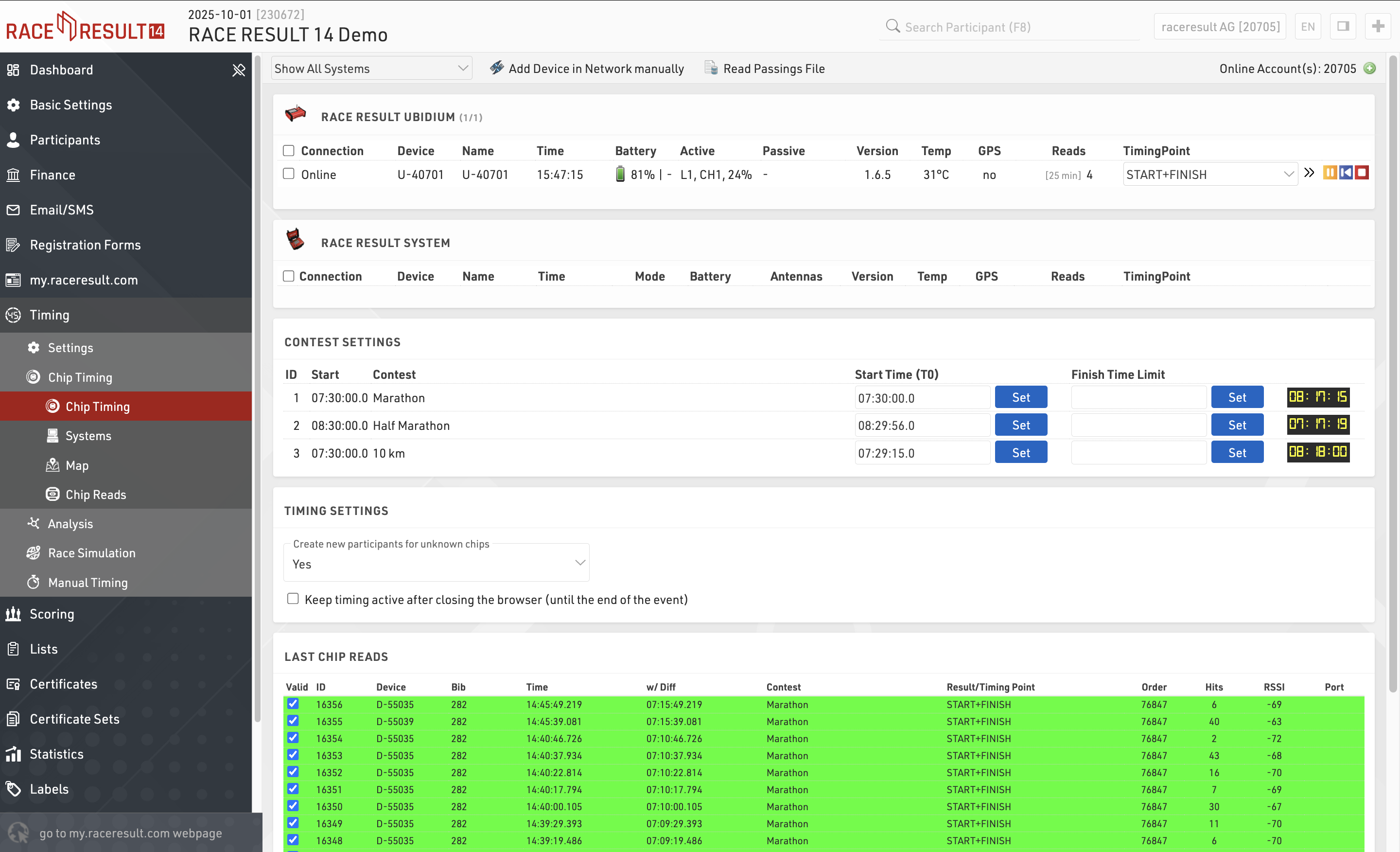 With version 12.3.17 we released an important update to RACE RESULT 12 which is required when timing online. You will need to run the RACE RESULT Webserver from this version (or newer) in order to connect to local systems in the Timing Tab. This replaces the Local Adapter although, for the time being, this will still be used for connecting to tools and when timing offline.