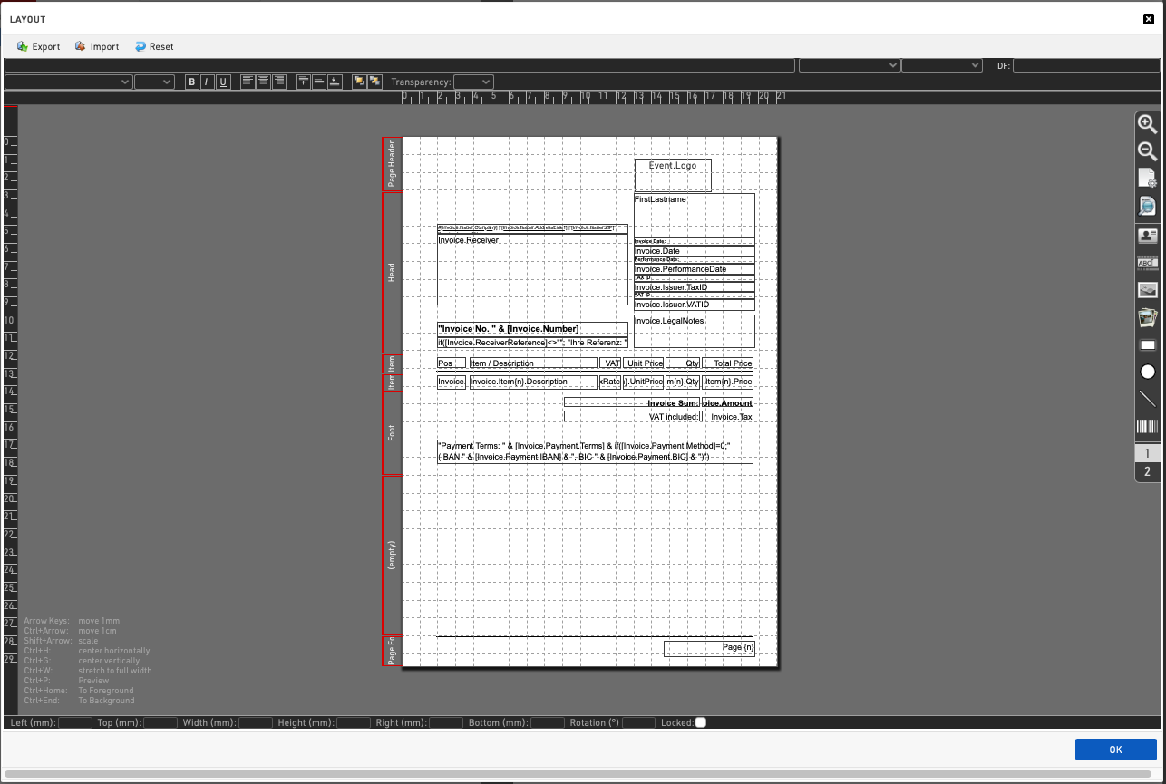 Each event file contains only a single invoice layout, this can be designed similarly to Certificates using the same elements and formatting techniques.