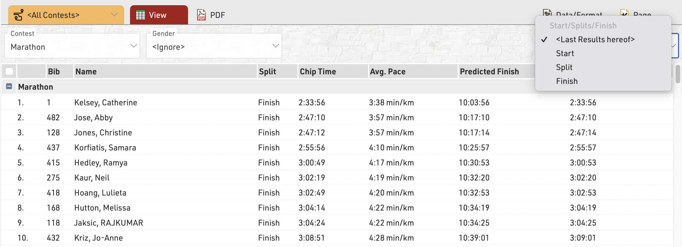 In particular, filters are important for result lists: you would like to show only those participants that have already finished. Usually, the filter will be that the rank must be greater than 0.