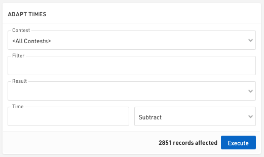 With this function you can adjust the times (in static Special Results) of all participants of a contest by adding or subtracting a certain time value. This has no impact on raw timing data.