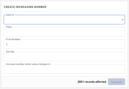 Sort By: select a field by which the records will be sorted. In other words, in which order the increasing number will be assigned.