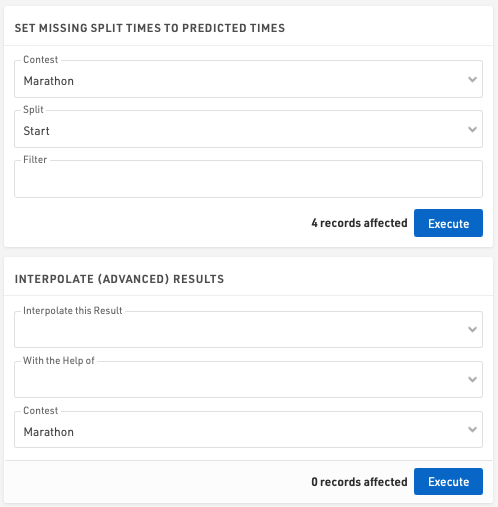 For each participant missing the start time, the system looks for the 5 participants that finished right before him/her and the 5 participants that finished right after him/her. The system then calculates the average start time of these 10 participants and uses this average as interpolated value.
