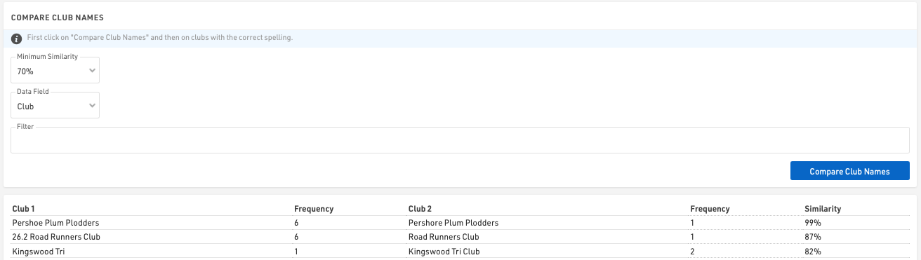 You can also define a minimum similarity two clubs need to have to show in the results and you can also run the compare based on an Additional Field instead of the club field.