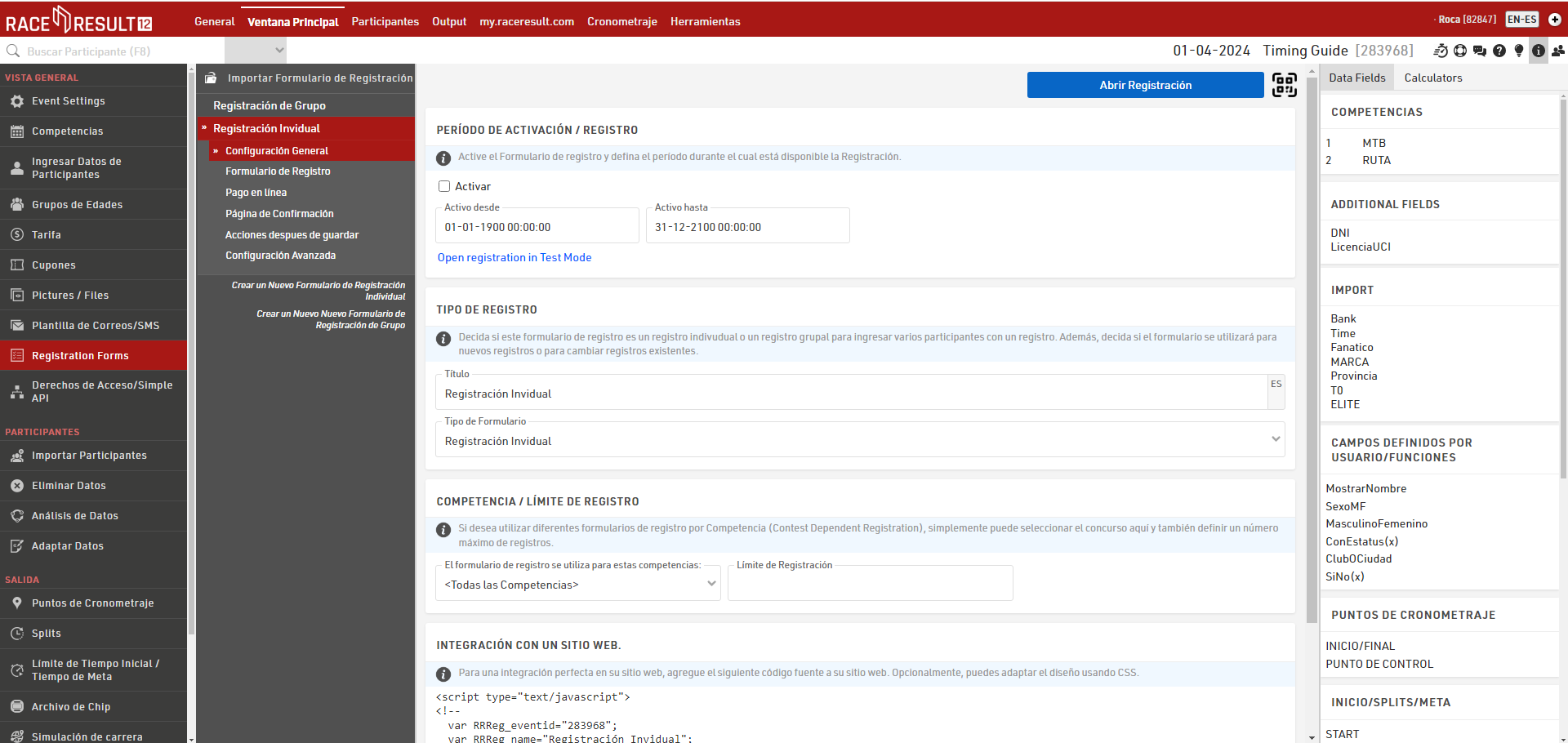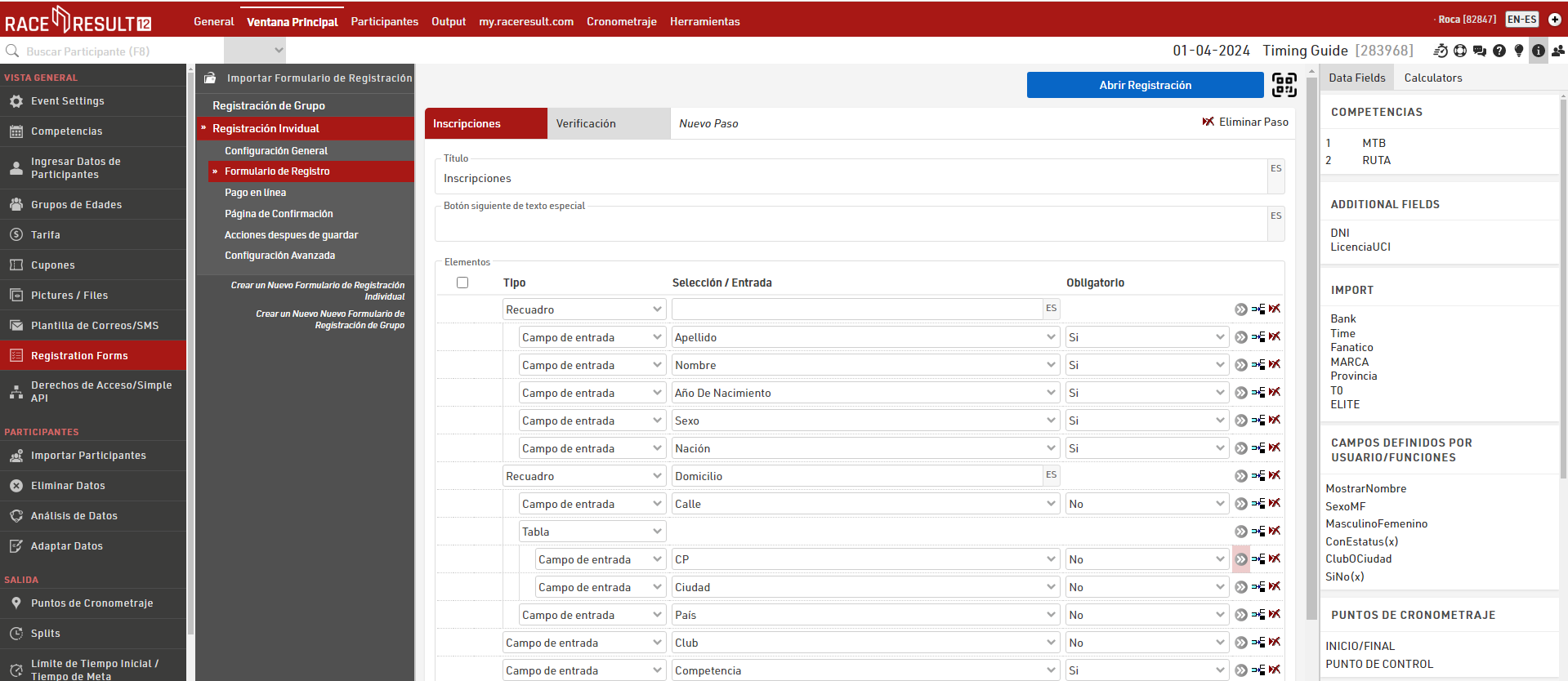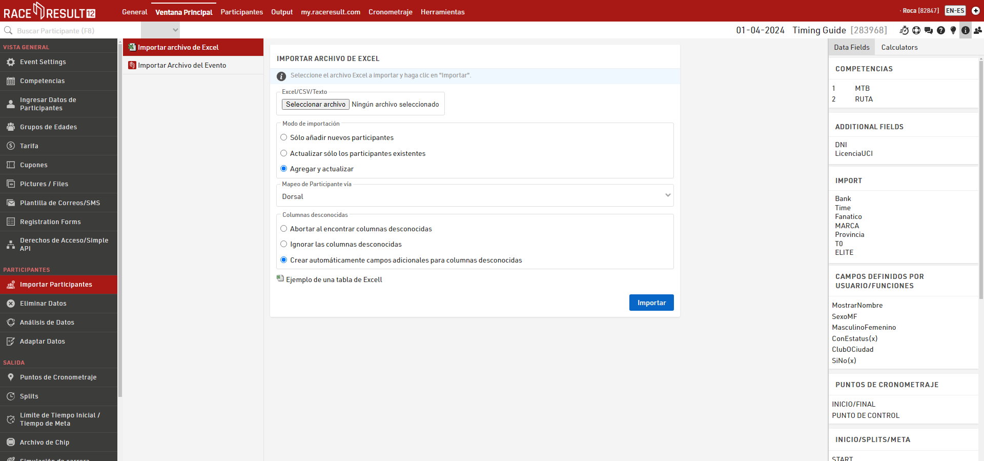 También es posible que RACE RESULT 12 genere estos campos adicionales automáticamente al importar participantes manualmente.