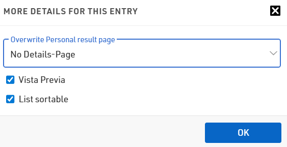 Si deseas mostrar la Página de Detalles solo en listas específicas, puedes usar la opción Sobrescribir página de resultados personales, que permite habilitar o deshabilitar las páginas de resultados personales para esa lista en particular.