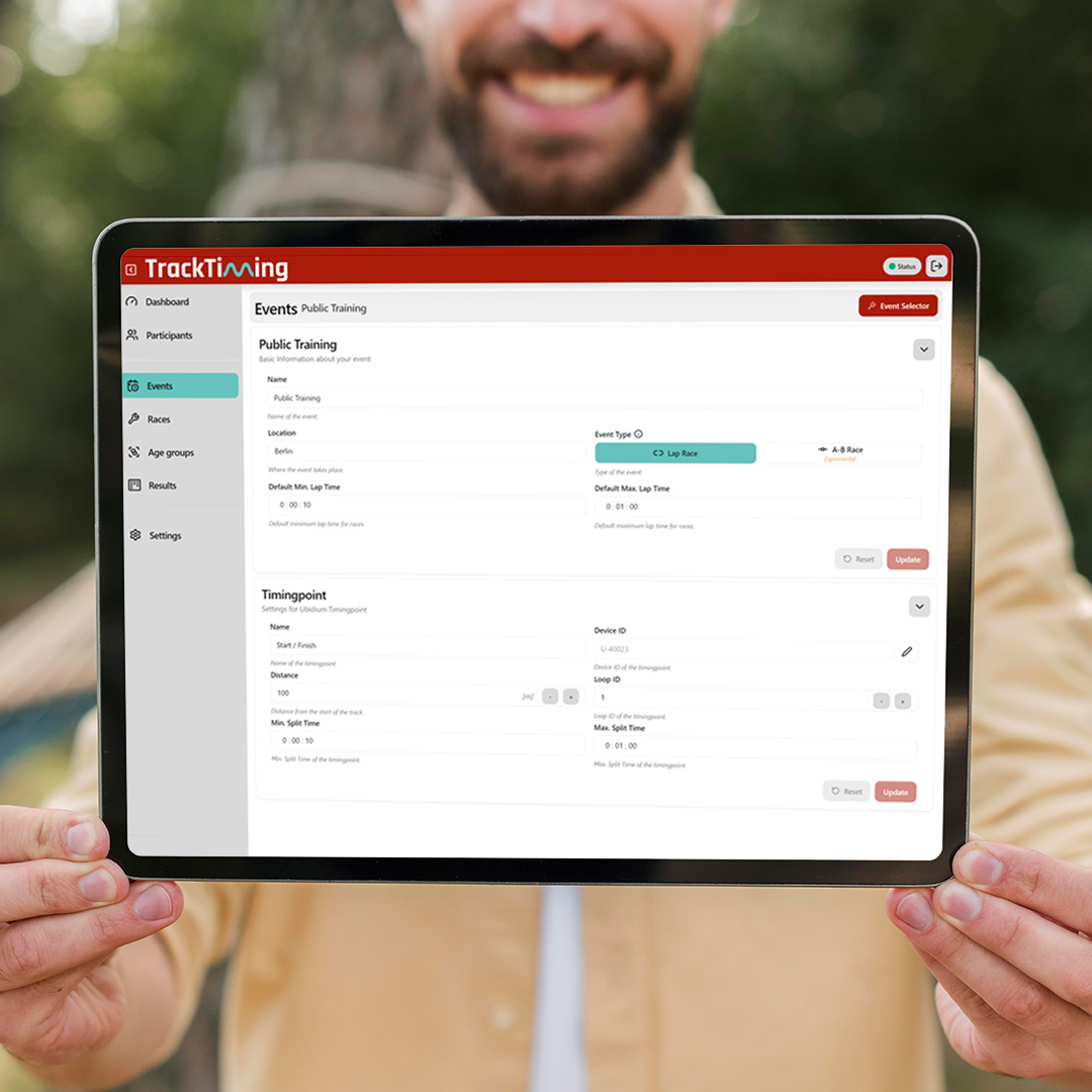 TrackTiming est super facile à utiliser. En quelques clics seulement, vous pouvez créer de nouveaux événements, ajouter des participants et attribuer des transpondeurs. Il fonctionne sans logiciel supplémentaire sur tout appareil compatible Wi-Fi et navigateur.
