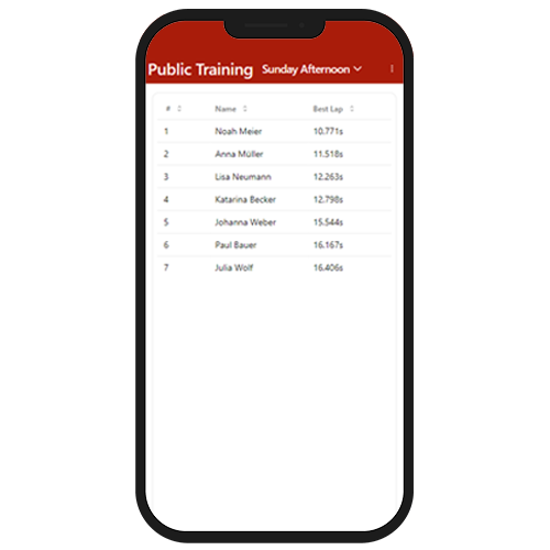 Plus précis qu'un chronomètre ! Avec TrackTiming, vous enregistrez les tours d'entraînement en temps réel avec une précision de 0,004 secondes.