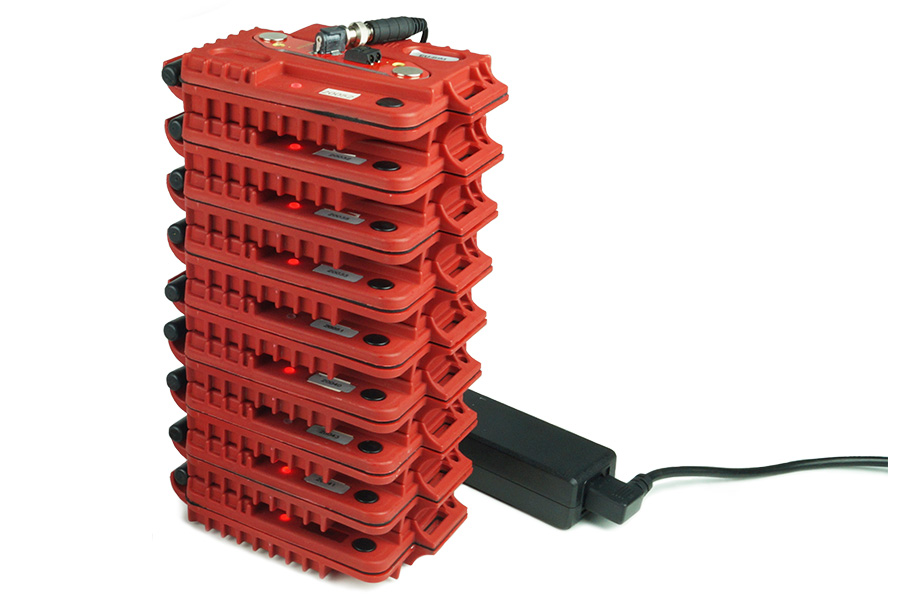 La Track Box embarque 3 batteries Li-Po de 4000 mAh et 3,7 V d'une capacité totale de 45 Wh, lui assurant une durée d'utilisation de 10 à 18 heures en opération et de 10 jours en standby. Avec l'alimentation de 12 V et le chargeur dédoublé, deux Track Boxes peuvent être chargées simultanément sur une même prise. Lorsque le reader est en standby, la charge dure environ 6 heures.