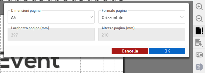 Definisci innanzitutto le dimensioni della pagina e scegli tra orientamento orizzontale e verticale: