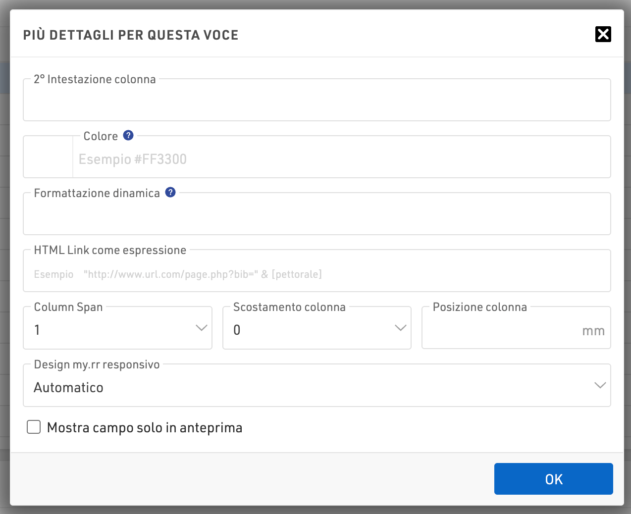 Mostra campo solo in Anteprima