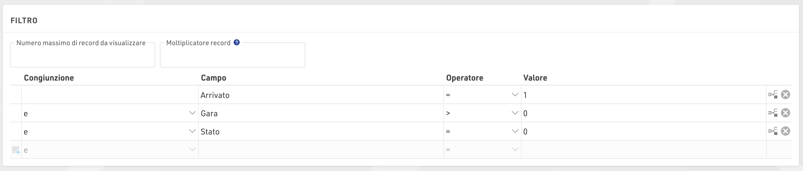 Impostando un Filtro, è possibile escludere determinati record dal report. Se non viene definito alcun filtro, tutti i record verranno mostrati nella lista.