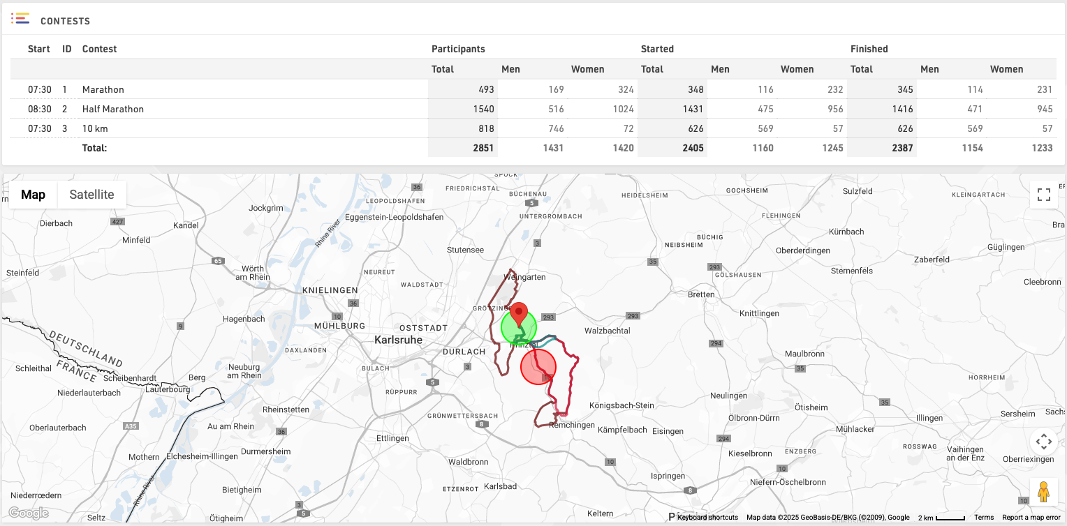Click View Map to additionally see the GPX routes of each Contest on a map.