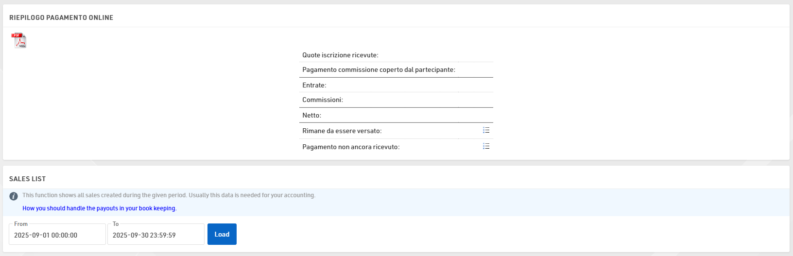 La Sales List consente di generare un elenco dei pagamenti ricevuti in un intervallo di tempo specifico, solitamente richiesto a fini contabili.
