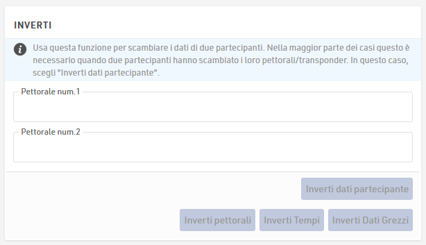 Per utilizzare le funzioni Inverti o Copia, è sufficiente inserire i due numeri di pettorale e fare clic sul pulsante in base a ciò che desideri ottenereö le opzioni e i casi d'uso sono spiegati di seguito.