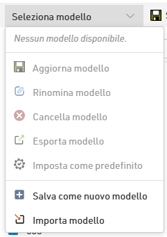 Tramite Salva/carica modello è inoltre possibile memorizzare le impostazioni e recuperarle facilmente in seguito.