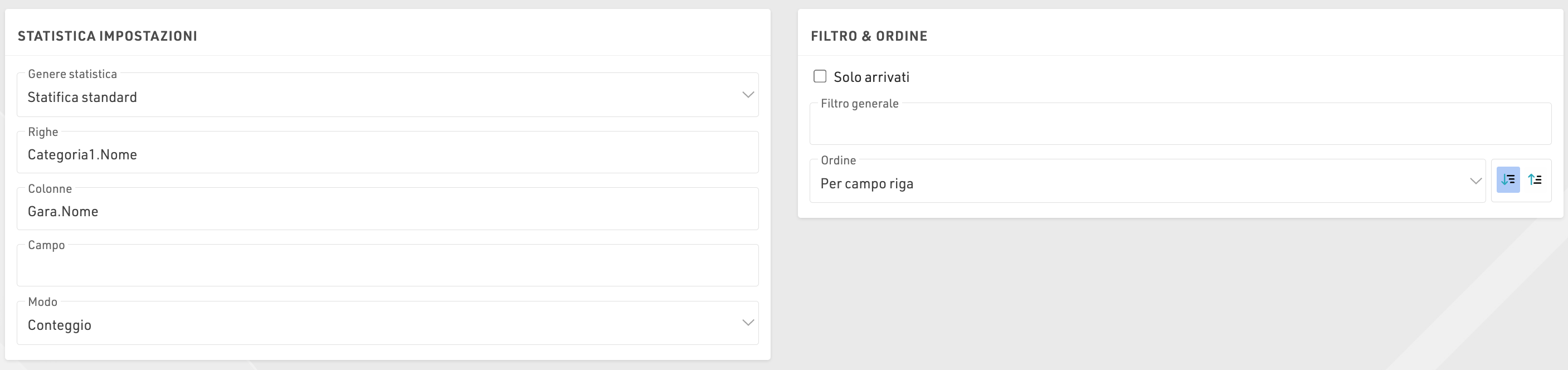 Se si desidera limitare i partecipanti considerati per le statistiche, abilitare solo arrivati o immettere un Filtro generale.