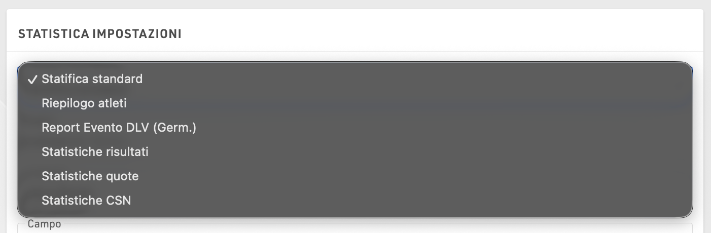 - Statistiche CSN elenca tutti i CSN (campi Si/No) e mostra quanti partecipanti hanno selezionato il corrispettivo CSN.
