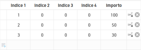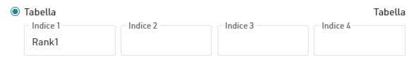 Usando una tabella puoi cercare i valori in una tabella. La tabella ha 4 indici (nella maggior parte dei casi avrai bisogno solo di uno) che puoi selezionare attraverso i campi da Indice 1 a Indice 4. Supponiamo che tu voglia calcolare i punti come segue: primo posto: 100 punti, secondo posto: 50 punti, terzo posto: 30 punti, altro: 0 punti. In tal caso la tabella può apparire così: