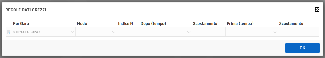 Puoi sia inserire una regola per <Tutte le Gare> o per ogni singola gara e specificare se la lettura grezza che necessiti di elaborare è prima e/o dopo un altro risultato (più uno scostamento): hai in sostanza infinita flessibilità per definire le regole!