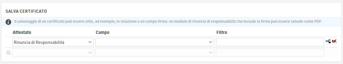 Il salvataggio di un certificato può essere utile in connessione con un campo firma, in cui la firma su un modulo di rinuncia viene salvata come PDF.