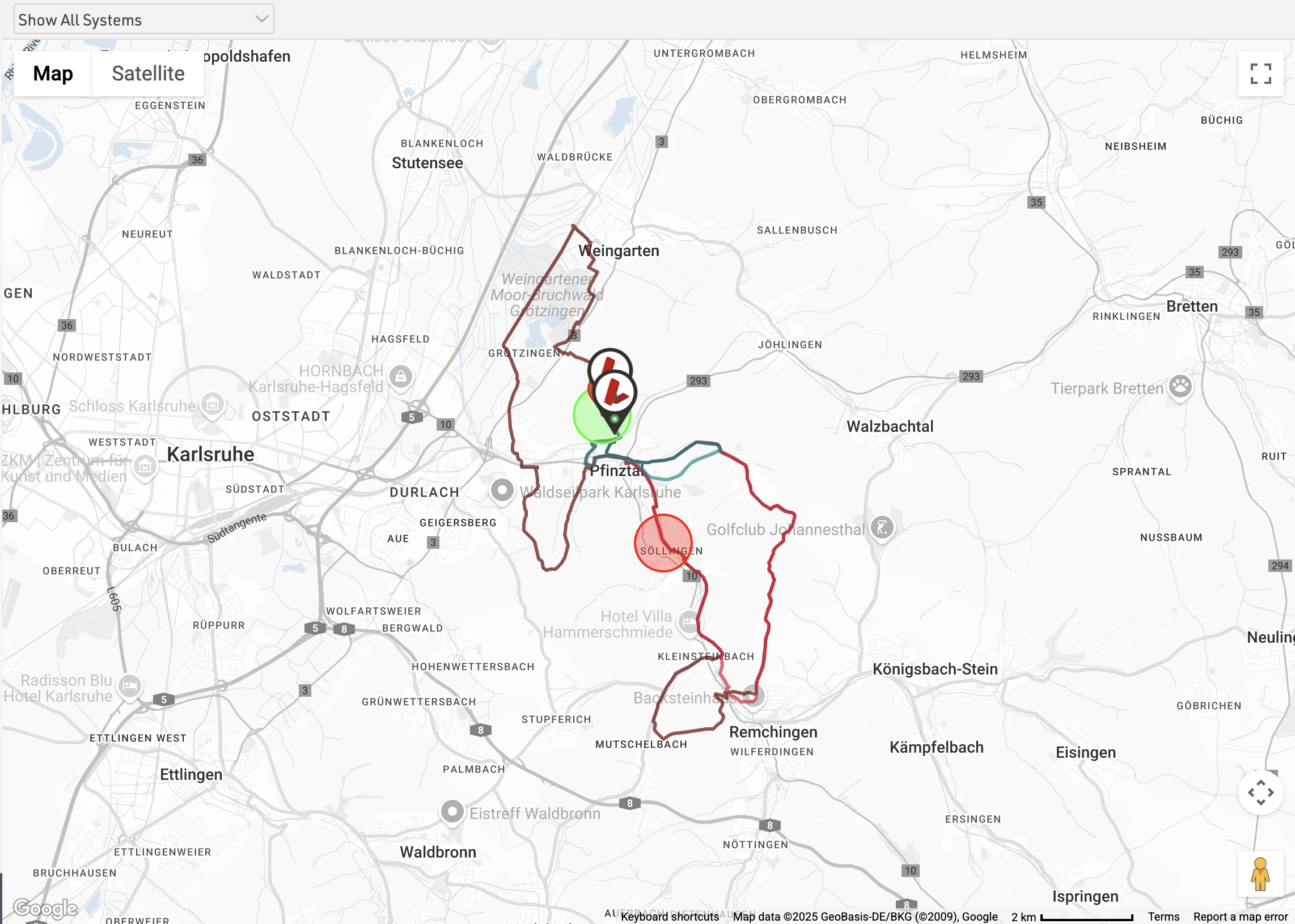 Systems can be filtered to show only those to which you are Connected or those within a certain distance based on the Basic Settings and the system GPS location.